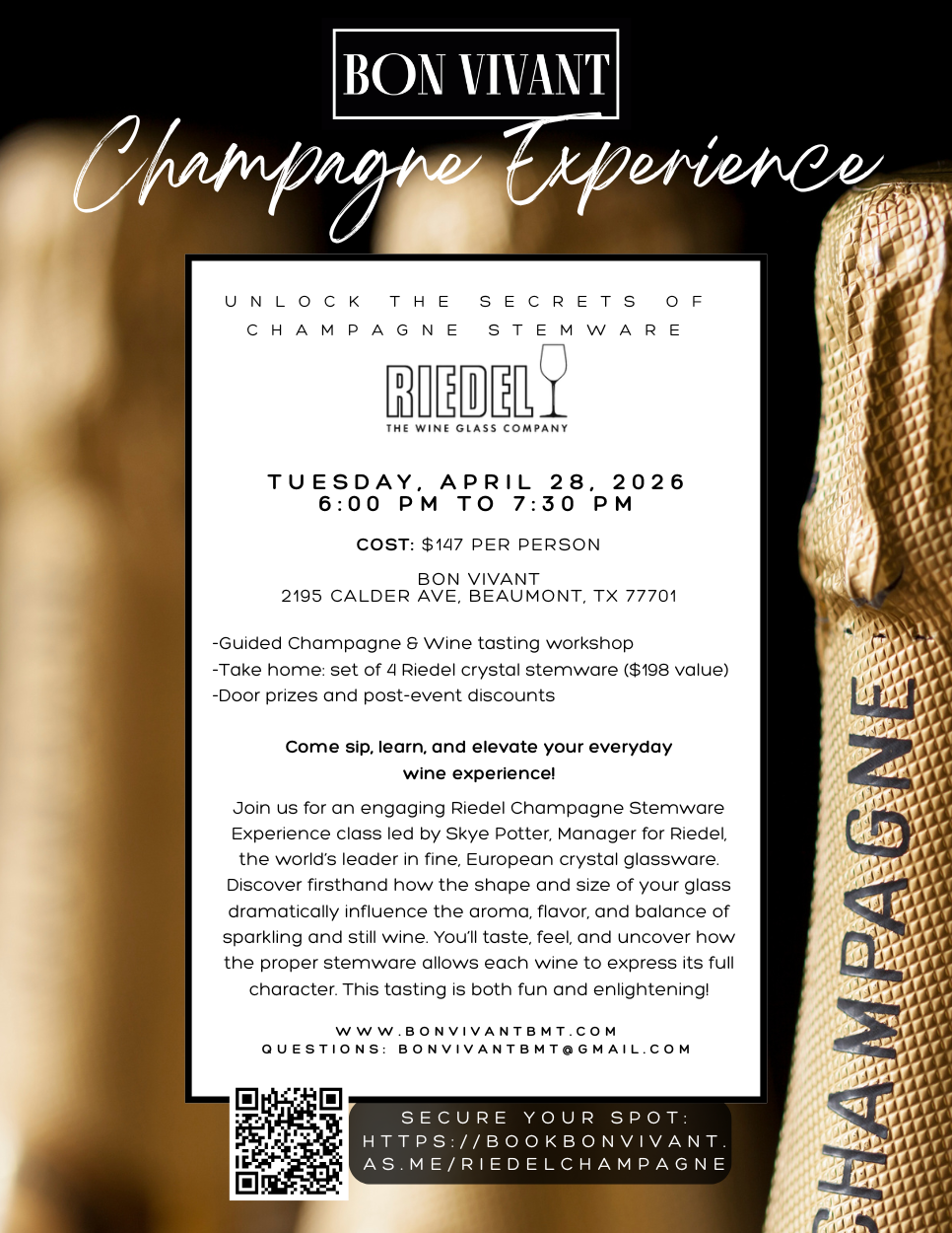 Book here: https://bookbonvivant.as.me/riedelchampagne